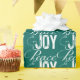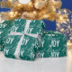 Holiday wrapping paper with white text that reads Peace & Joy. You can customize the teal background to be any colour you want.