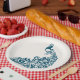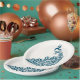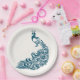Paper plates with an image of a teal peacock with fancy feathers. A cool art deco style. Modern and classy