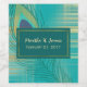 Chic wedding full size wine labels, done in a teal and gold abstract pattern, with a faint teal peacock feather, in the background. A teal and gold rectangle text area, in the middle of the label, has custom golden tan text. Personalize the text to read what you want. Great for your reception wedding wine.