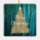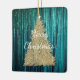 Teal Pine Green Tinsel Gold Christmas Tree Ceramic Ornament