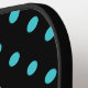 You'll stand out on the Pickleball court with this custom-designed pickleball paddle with a turquoise blue polka dot pattern on a black background with a teal blue and white trimmed band across the centre that has customizable wording on both sides. The front says, "Pickleball Princess" and the back is personalized with your name and there is an image of a green pickleball behind the blue band. Email niteowlstudio@gmail.com with any request for changes.