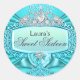 Teal Princess Tiara & Damask Sweet 16 Sticker