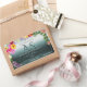 Make a lasting impression with this lovely and elegant monogrammed product label design featuring many different colourful flowers on a teal gradient background with a shimmery frame.
