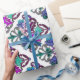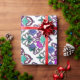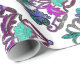 TEAL PURPLE BLUE GREEN EMBROIDERY FLOWERS WRAPPING PAPER