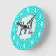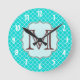 Teal Quarterfoil Lattice Quarter Foil Monogram Initial Personalized Custom Fabric Pattern Wall Clock
