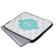 Protect your laptop with a Teal Quatrefoil Personalized Laptop Sleeve. Laptop sleeve design features a simple quatrefoil background and fancy emblem to personalize with your name and monogram. Additional items available with this design as well. Please contact me directly for assistance with personalization.