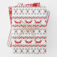 Teal Red Snowflake Reindeer Pattern Wrapping Paper Sheet