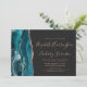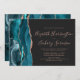 Teal Rose Gold Agate Dark Horizontal Wedding Invitation