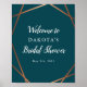 Bridal Shower welcome poster with faux rose gold geometric frame on a teal background. Customize this product by adding the bride-to-be's name and the event date. Elegant and modern design.
