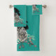 Teal Roses Crows Ravens Birds Crows Bath Towel Set. Black Bird on roses flowers. Garden grey rose flowers and raven birds. Raven and teal background. Raven, Crow or Black Bird Bar Bathroom Towel or Kitchen Towel Home Decor. Customize your Raven black bird towel background colour online to create the perfect fit for home decor theme
