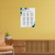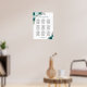 Celebrate your big day in style with our stunning wedding seating chart! Featuring a charming rustic bohemian chic design, this seating chart showcases exquisite hand-painted watercolor roses in shades of teal, turquoise, aqua, and cyan, accented with lush eucalyptus leaves and sprigs of garden greenery. With seating arrangements for up to 90 guests, each table can comfortably accommodate up to 10 people. The elegant script calligraphy title adds a touch of sophistication and class and there is space at the bottom of the chart for the names of the couple and the wedding date,. Order your wedding seating chart today and create a truly memorable event!