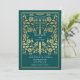 Set the tone for your medieval fantasy wedding with a bold invitation design—a grand gold sword surrounded by florals against a teal background. Perfect for couples dreaming of an epic, romantic celebration. Make your love story legendary from the very first glance! NOTE: the gold featured in this design is NOT real foil.