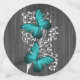 Decorate tables at your upcoming wedding or bridal shower with Teal Rustic Butterfly Wedding Shower Table Confetti. Confetti design features a pair of vibrant butterflies against a white leafy vine and rustic wooden background.