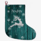 Add a whimsical touch to your mantle this holiday season with a personalized Teal Rustic Christmas Reindeer Stocking. Stocking design features a teal rustic wooden background with a Christmas reindeer adorned with falling snowflakes. Additional gift and holiday items available with this design as well.