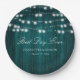 Teal Rustic Country Wood String Lights Wedding Paper Plate