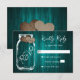 Teal Rustic Wood Mason Jar Burlap Hearts Wedding RSVP Card