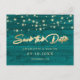 Teal Rustic Wood String Lights Save The Date Announcement Postcard