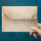 Searching for elegant stationery to complement your teal, light sage, seafoam green, and gold princess invitations? Transform plain envelopes into magical keepsakes with this easy to edit DIY template. Effortlessly personalize the 5x7 envelope design with your own return address or special message. This luxurious layout showcases original artwork by Raphaela Wilson, including a vintage gold crown carriage, an almost midnight clock, and vintage aged scroll parchment paper textures for a romantic, storybook look. The floral inner envelope liner blooms with watercolor roses in shades of teal, light sage, and seafoam green, creating a lush, regal botanical aesthetic. Accents of faux gold whimsical butterfly confetti and metallic highlights shimmer throughout, bringing a warm, fairytale glow - perfect for a Cinderella sweet 16 birthday party, teal quinceañera, enchanted storybook wedding, or royal baby or bridal shower. The back flap presents additional watercolor roses, graceful greenery kissed with gold, and subtle confetti flourishes. Fully customizable modern and calligraphy script fonts let you tailor the typography to suit your fancy. Want to add an extra elegant touch? Use decorative wax seals or stickers to secure the back flap for an unforgettable finishing detail. Category: seafoam green floral 5x7 envelopes (rsvp card size available); cute fairytale wedding envelopes; and horse drawn princess carriage pre addressed wedding return address envelopes. Seafoam quinceanera theme colors: light teal, sage green, dusty aqua, light blue evergreen mint, tan, light brown, beige, ivory white, black, and yellow champagne gold.
