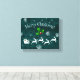 Adorn your walls with holiday cheer with this festive Teal Santa's Sleigh and Reindeer Stretched Canvas Print. Canvas Print design features Santa's sleigh adorned with holly berries and pulled by his reindeer against a teal background with falling snowflakes. Additional gift and holiday items available with this design as well.