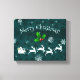 Teal Santa's Sleigh and Reindeer Canvas Print