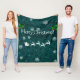 Teal Santa's Sleigh and Reindeer Fleece Blanket