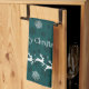 Teal Santa's Sleigh and Reindeer Kitchen Towel