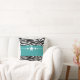 Trendy and modern Sassy Star Zebra Pillow featuring a chic black and white zebra print background and a bold turquoise border adorned with a fun star motif. This girly design may be customized with the personalized text of your choosing. Click "Customize It" to find more personalization options.