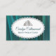 Elegant satin looking pageant coach business card done in teal, with graphics of a diamond edged text area and a silver and diamond tiara. Personalize all the text for your pageant business.