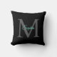 Teal Script Name, Large Grey Monogram on Black Throw Pillow