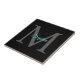 Teal script name and large grey monogram on black background. Click “Edit” to easily change colours and type styles.
