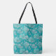 Teal, turquoise white and seafoam green semi-abstract sea shells on a turquoise background print bag