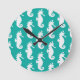 Teal Seahorse Pattern 1 Round Clock
