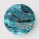 Teal Silver Agate Glitter Safari LEopard Print Round Clock