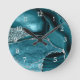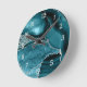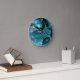 Teal Silver Agate Safari Glitter Leopard Print Round Clock