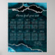 Guide your guests in style with this elegant wedding seating chart featuring a teal blue agate marble design accented with luxurious silver details. The bold geode-inspired background creates a dramatic and sophisticated look, perfect for fall and winter weddings, formal celebrations, or glamorous evening events. Designed for up to ten tables, the layout keeps names organized and easy to read while complementing the organic agate texture. Ideal for couples seeking a stylish and unique wedding display, this seating chart blends natural stone aesthetics with a refined, modern layout. Easily personalize all text to match your wedding details and create a beautiful focal point for your reception.
