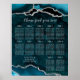 Guide your guests in style with this elegant wedding seating chart featuring a teal blue agate marble design accented with luxurious silver details. The bold geode-inspired background creates a dramatic and sophisticated look, perfect for fall and winter weddings, formal celebrations, or glamourous evening events. Designed for up to twelve tables, the layout keeps names organized and easy to read while complementing the organic agate texture. Ideal for couples seeking a stylish and unique wedding display, this seating chart blends natural stone aesthetics with a refined, modern layout. Easily personalize all text to match your wedding details and create a beautiful focal point for your reception.
