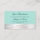 YOUR FAVORITE - Make a lasting impression with this elegant and classy business card design featuring a shimmery silver decor ribbon with a cute rose flower and leaves on a light teal background.