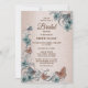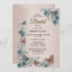 Teal Silver Floral Butterfly Tan Bridal Shower Invitation