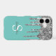 Teal Silver Glitter Drips Sparkle Monogram Name