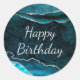 Teal & Silver Glitter Marble Agate Birthday Classic Round Sticker