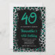Teal Silver Leopard Painted Black 40th Birthday Invitation