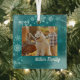 The striking teal backdrop adorned with delicate snowflakes creates an atmosphere of holiday magic and wonder. It's the perfect ornament to elevate your holiday tree or give as a thoughtful family Christmas gift.