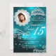 Teal Sparkle Diamond Tiara Photo Quinceanera Invitation