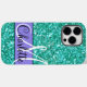 Fun party vibe, teal sparkling glitter -Case-Mate iPhone 14 Pro Max Case - text is customizable and design is transferable-