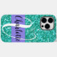 Fun party vibe, teal sparkling glitter Case-Mate iPhone 14 Pro Max Case - text font is customizable and design is transferable-