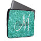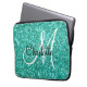 Fun party vibe, teal sparkling glitter Laptop sleeve - text font is customizable and design is transferable-