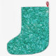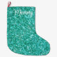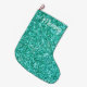 Fun party vibe, teal sparkling glitter stocking - text font is customizable and design is transferable-