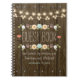 This wedding guest and advice book is part of a fall floral rustic string of lights wedding invitation set in teal mint blue aqua, coral, green, brown, white, yellow and brown hues with a beautiful wood look background reminiscent of a wooden fence and or barrel and nail head trim. An autumnal laurel wreath composed of acorns, berries, sunflowers, tulip rose and white blossoms sit on a leafy branch. The front of the notebook says Guest Book flanked by two coral hearts. It can be customized with your own wording and wedding date. Perfect for an outdoor fall, country, farmhouse, barnyard or rural chic themed wedding, bridal shower or couples shower or engagement party. The charming twinkle and fairy lights with a bokeh effect look bright, warm and inviting. Artwork © Chrissy H. Studios, LLC. All rights reserved.