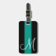 Add a stylish monogrammed luggage tag to your bags with this design featuring a wide teal stripe over chic black background. The large monogram is clearly visible to spot your bags on the airport carousel and may be edited with your own monogram. The reverse side of the tag contains your personal contact info.