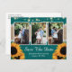 These teal rustic wedding save the date photo postcards featuring burlap, lace and sunflowers are ideal for a teal rustic wedding party inspired by sunflowers.